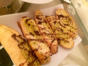 And toast up some garlic butter baguette slices from the top freezer.. Drizzled with fantastic Greek olive oil.. And thick balsamic vinegar..