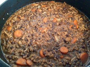 Adding beef stock and pre soaked puy lentils, that gives it an extra dimension!