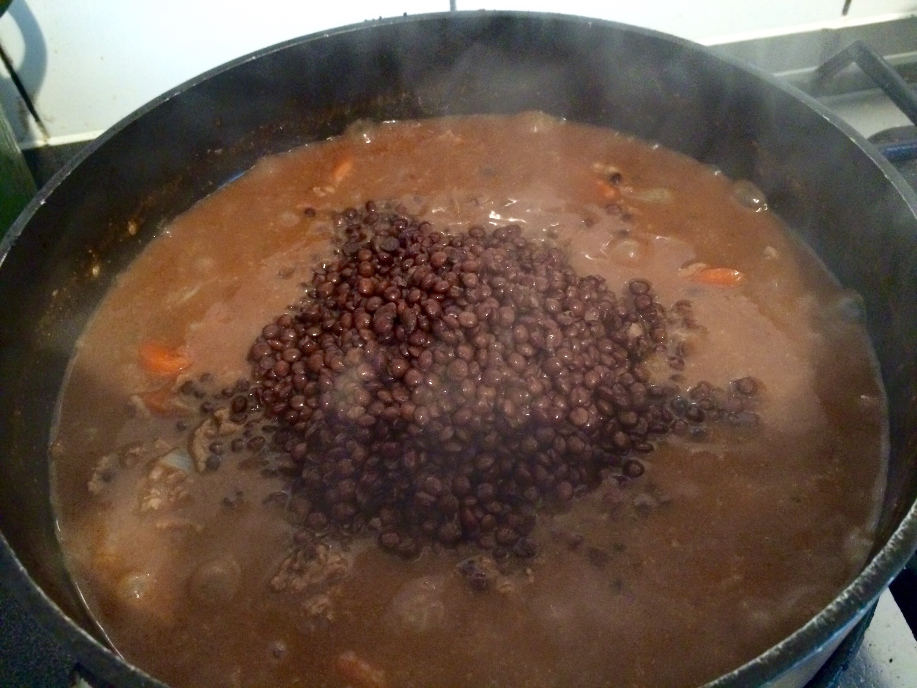 Adding beef stock and pre soaked puy lentils, that gives it an extra dimension!