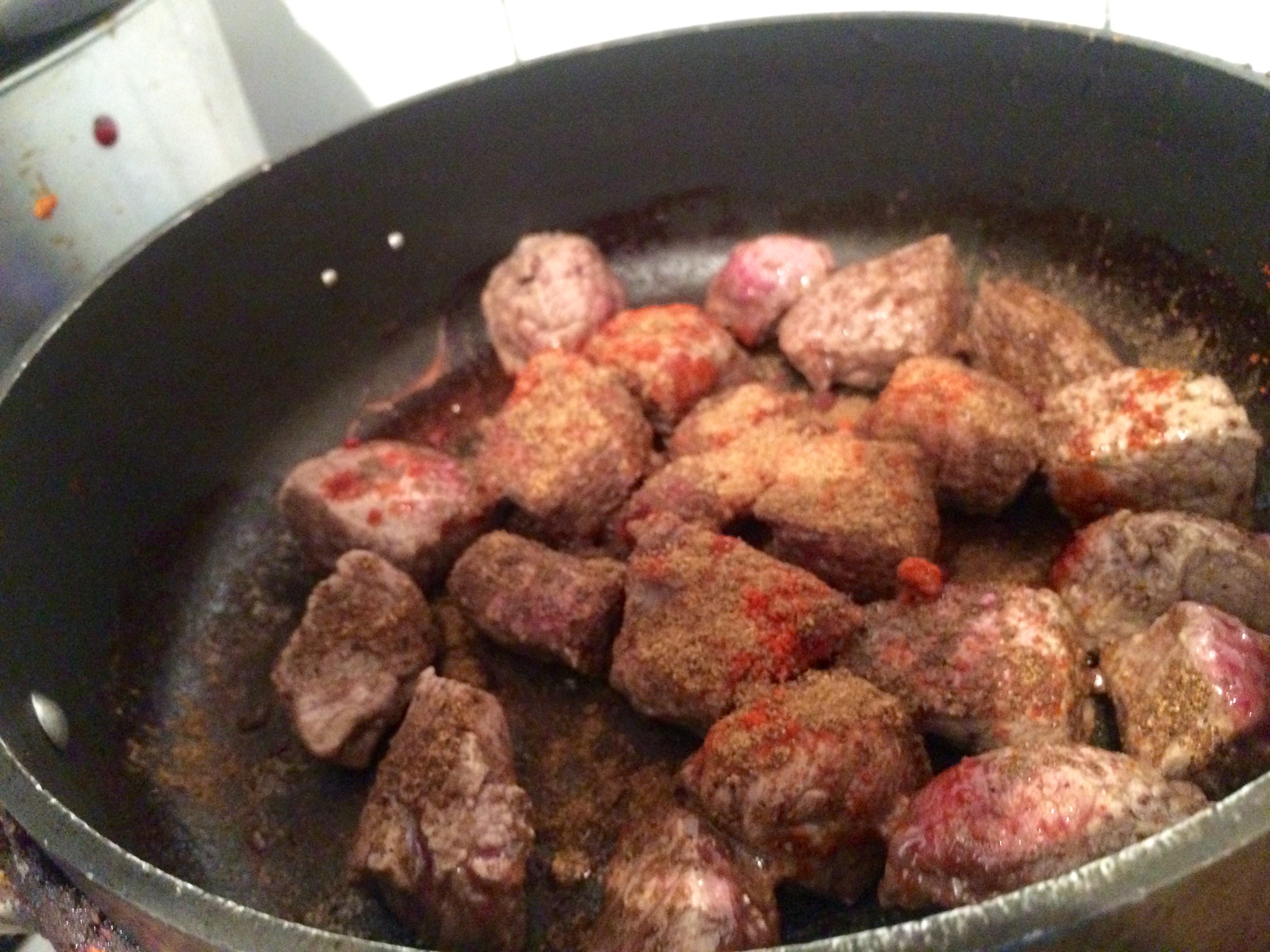 Fried off with fabulous French onion and garlic, Spanish smoked paprikas and Lebanese seven spice.. I forget just how lovely that stuff is.,