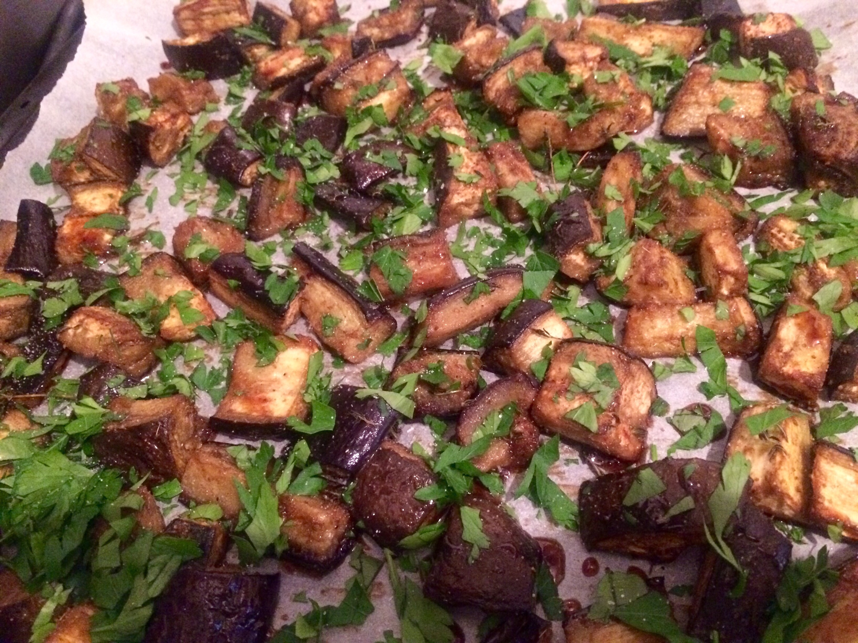 And the aubergine has parsley added to it.. And a smuttering of pomegranate molasses..