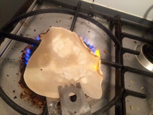 As this is #synfree cooking the poppadoms are cooked straight over fire..