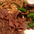Short rib , shiitake and sugar pea Udon noodles in Black bean and garlic #leekumsauce