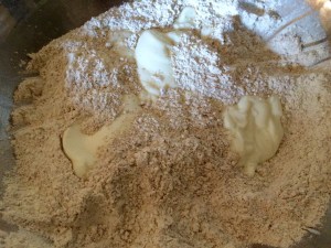 Mixed up by hand.. I hate gloopy hands.. As a child dirty hands were my nemesis .. Still are to be fair.. Blood and guts from beasts no problem.. Icky gloopy sticky hands from dough and the like.. No chance!