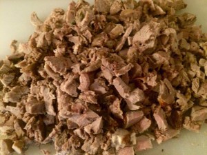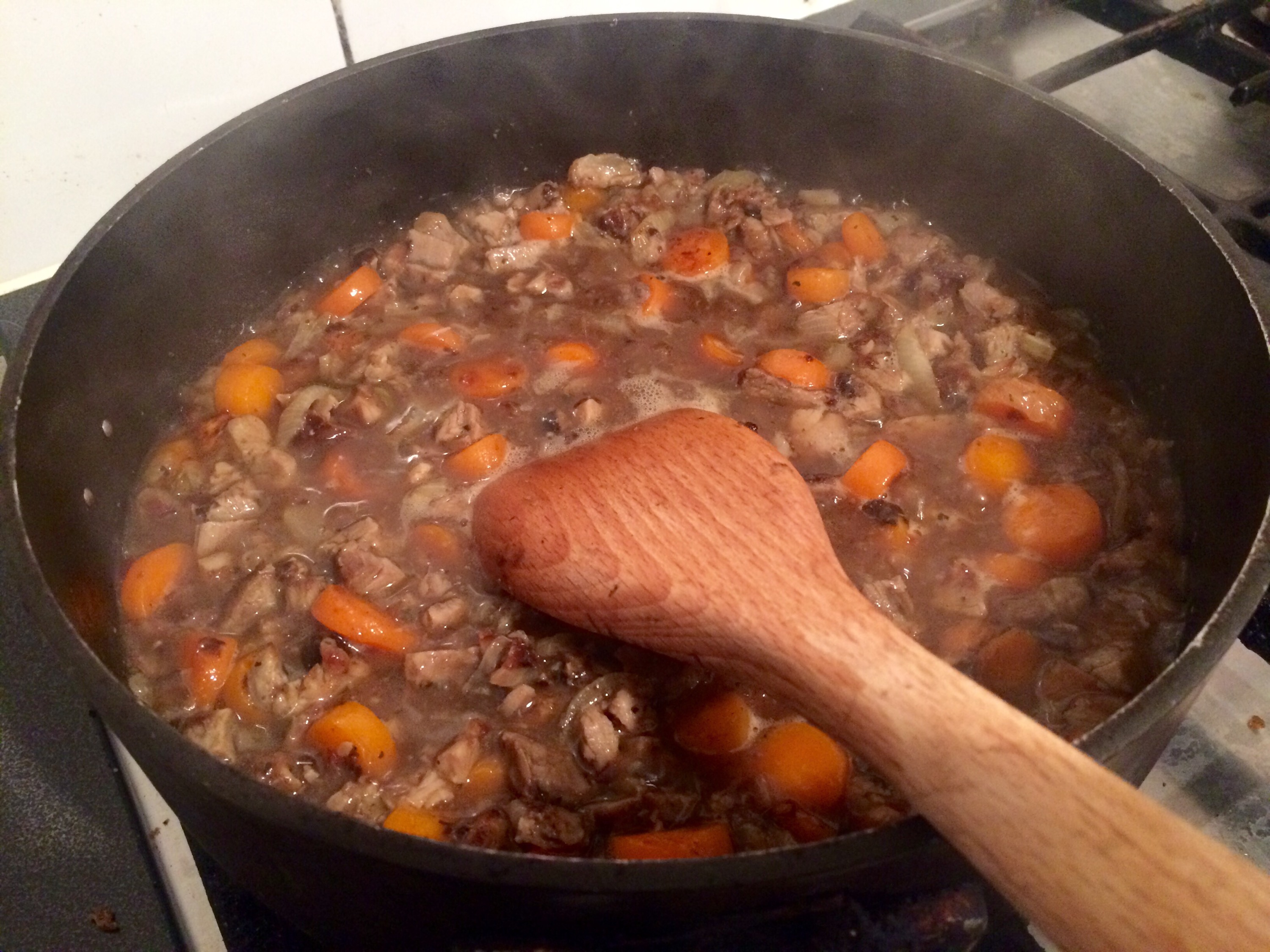 The leftover lamb leg.. Chopped and added to the pan.. This is a good opportunity to check through for ‘grizzly’ bits.. Although gotta say with this great welsh lamb there really ain’t much to go on..