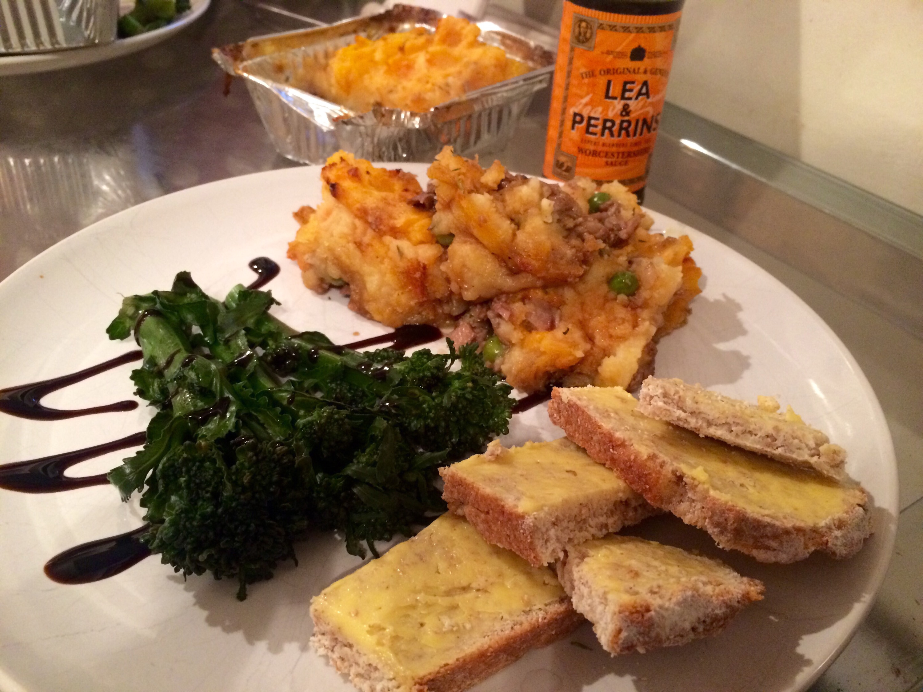 Welsh Shepherds pie with three veg mash & purple sprouting broccoli spears -welcome to comfort food!