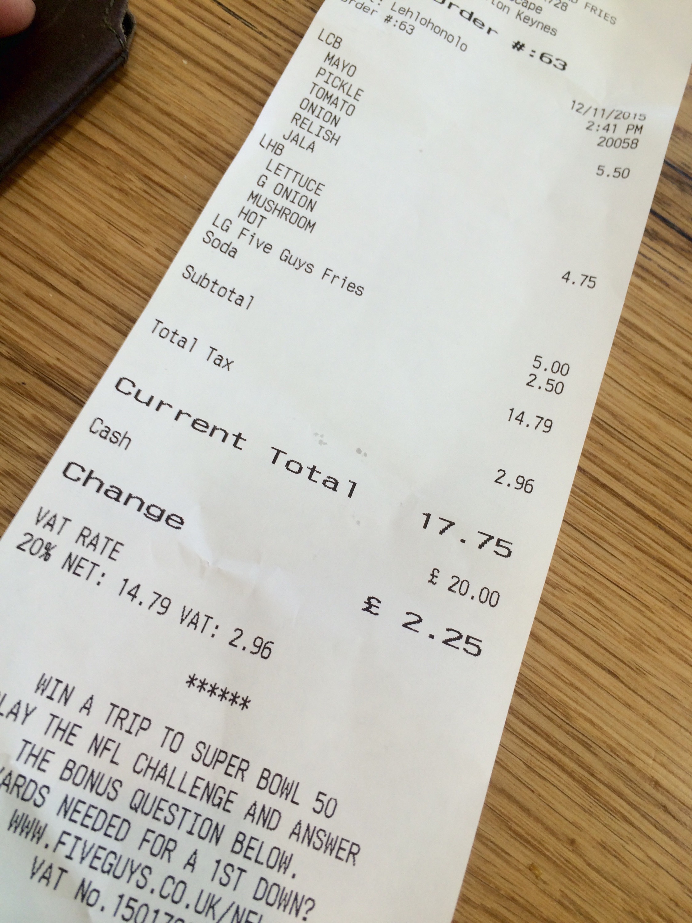 Five guys.. I loved five guys.. Whenever in the states and paying the right money!