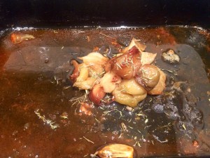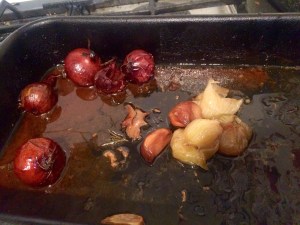 Baby onions, French garlic cloves and garden Rosemary popped around it..