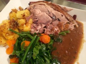 Spring greens, fine French green beans and chopped carrots make the veg .. The gravy warmed up ..