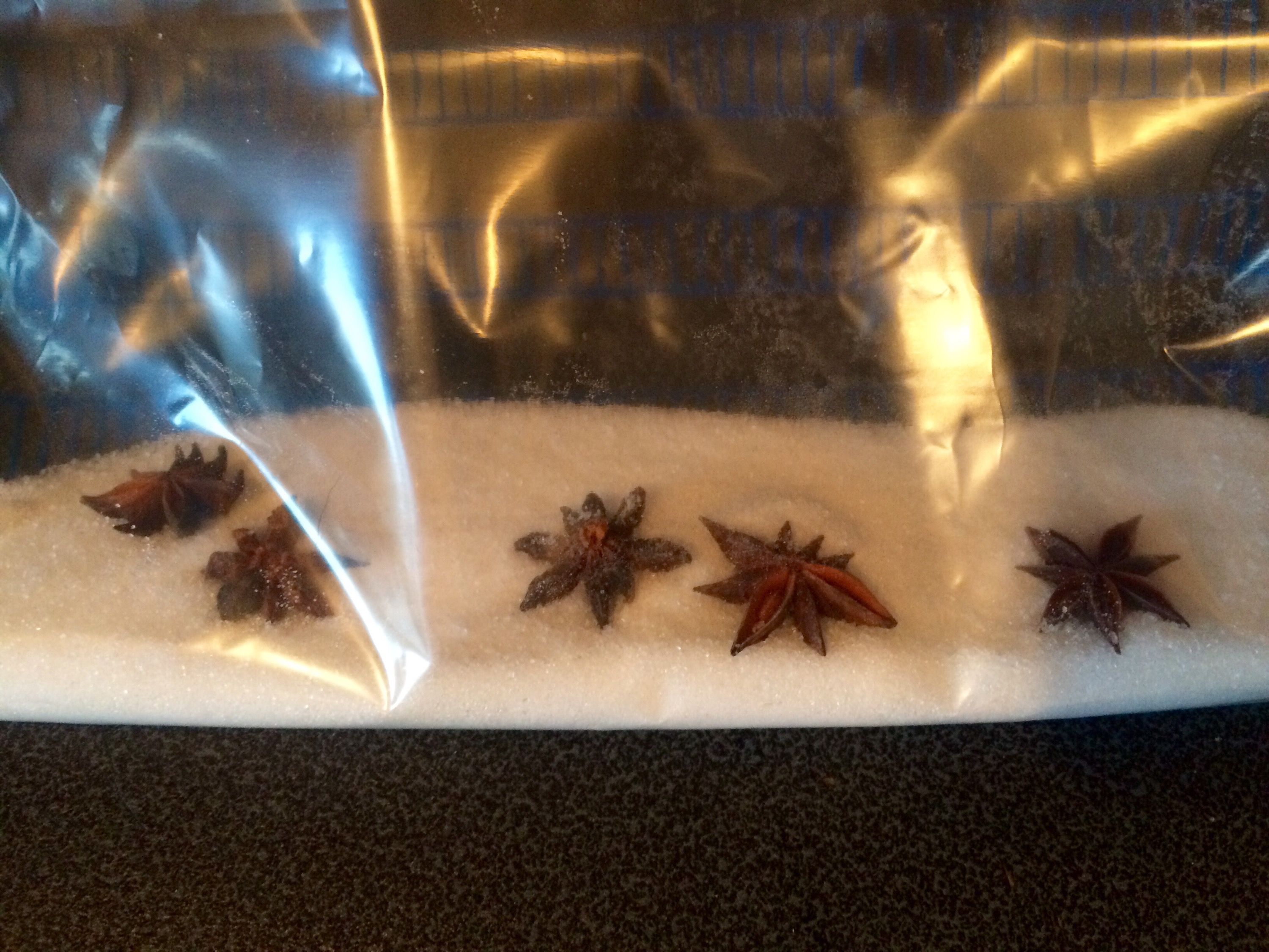 Went into this ziplock bag , with sugar , salt and star anise..