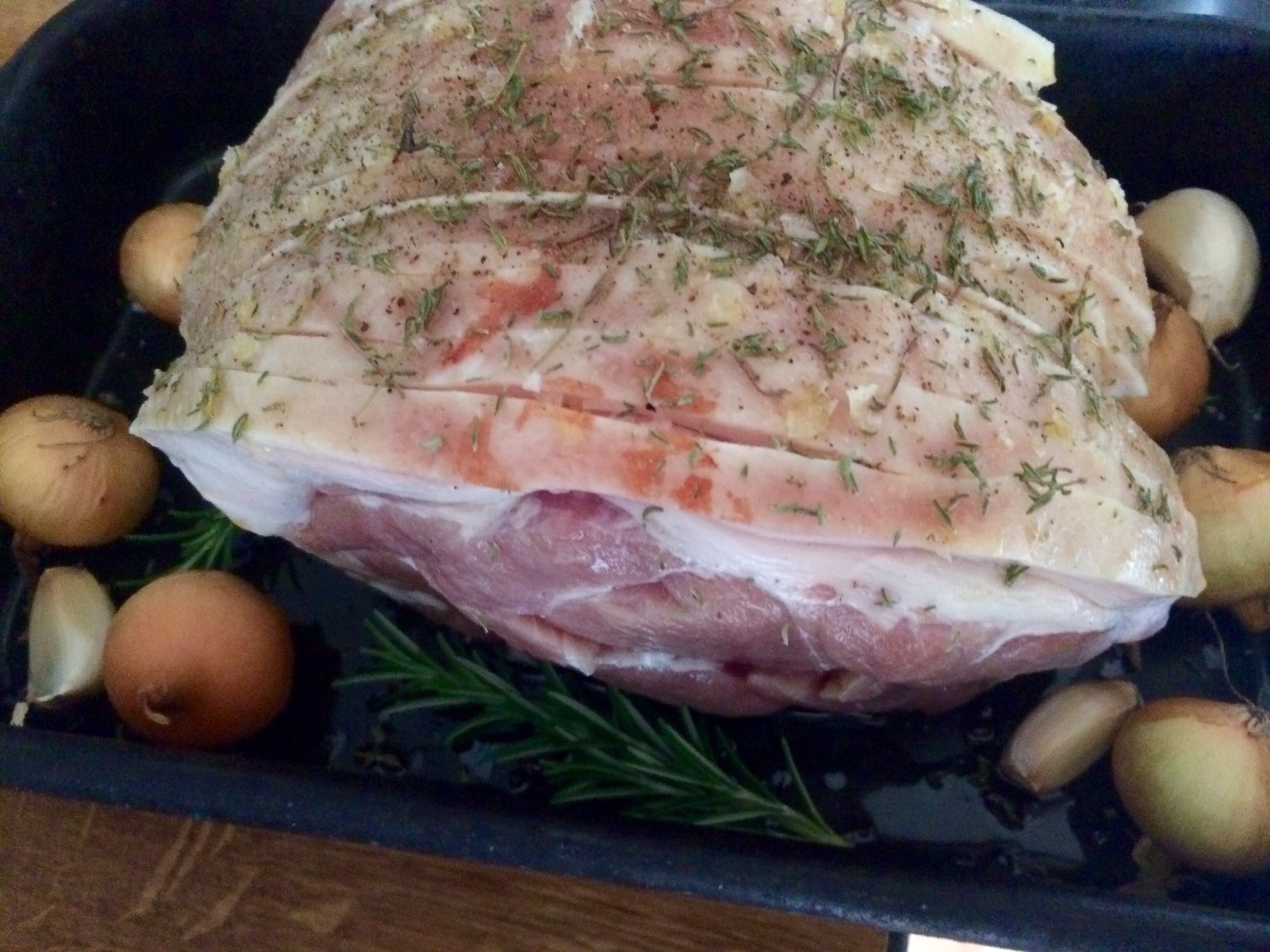 Baby onions, French garlic cloves and garden Rosemary popped around it..