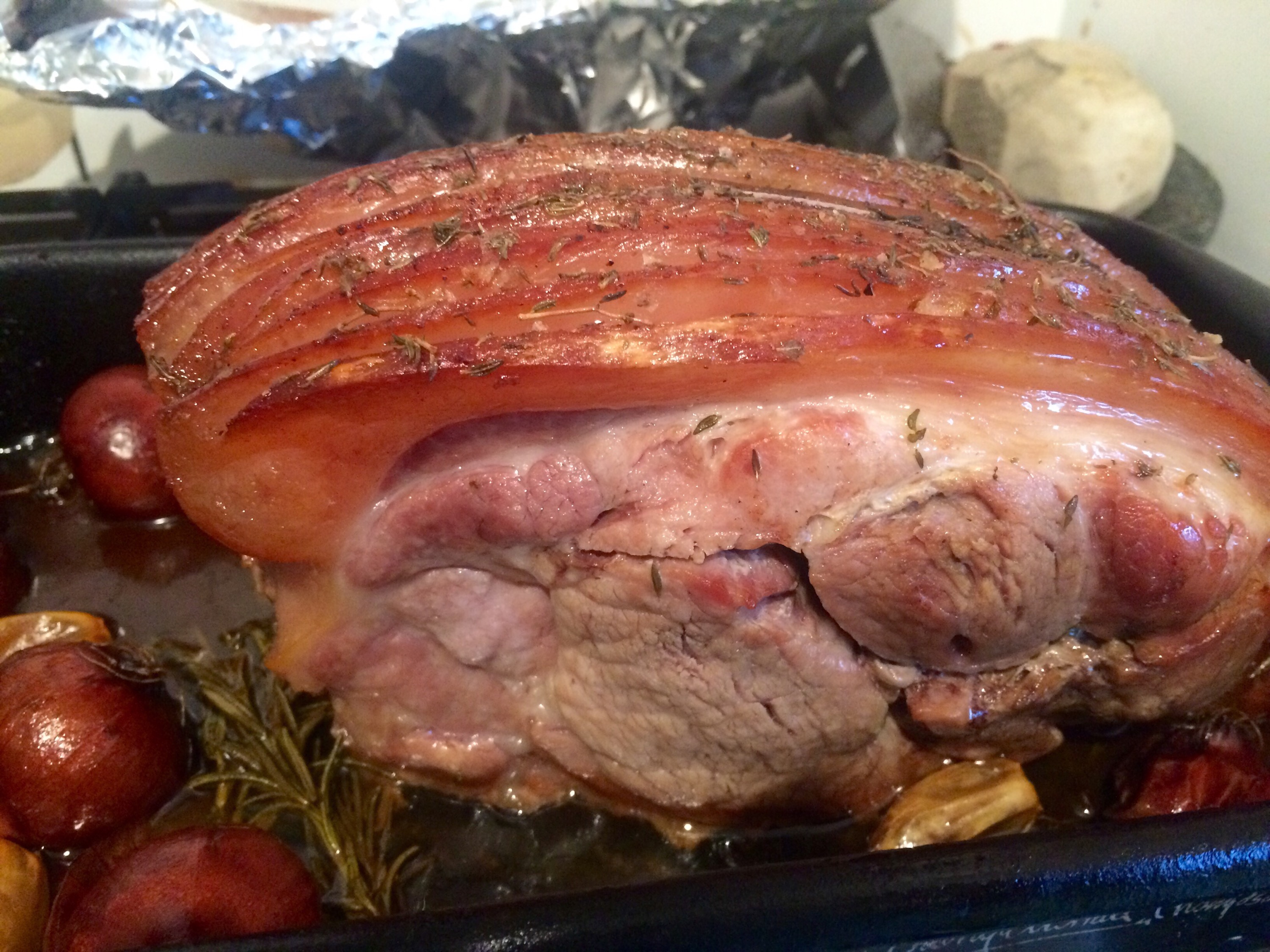 And then covered with foil.. And theoven turned down to 160.. For three and a half hours..