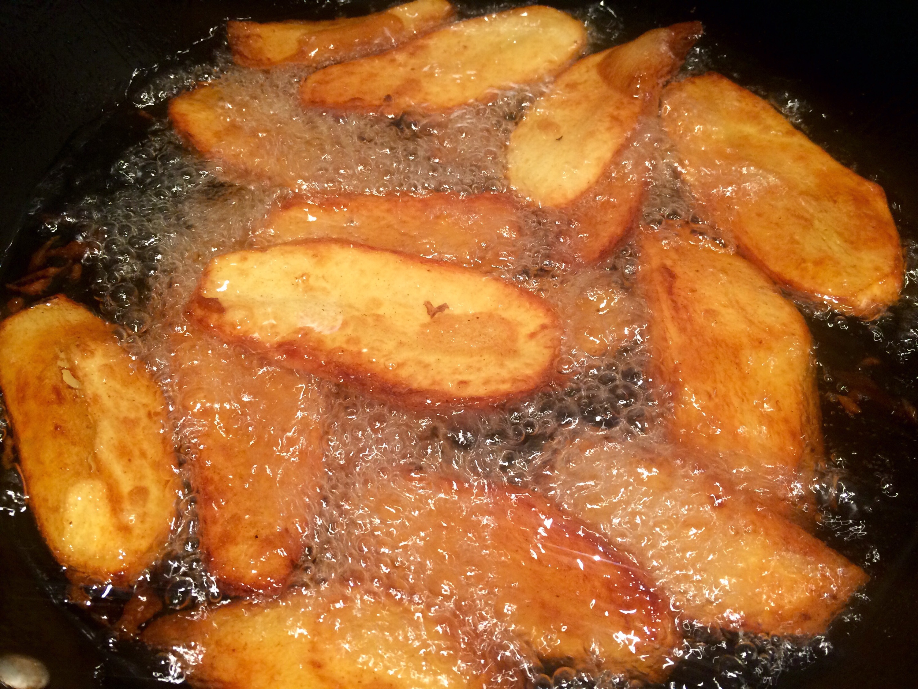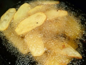 Draining and cooking again to an amazing crispness and taste.