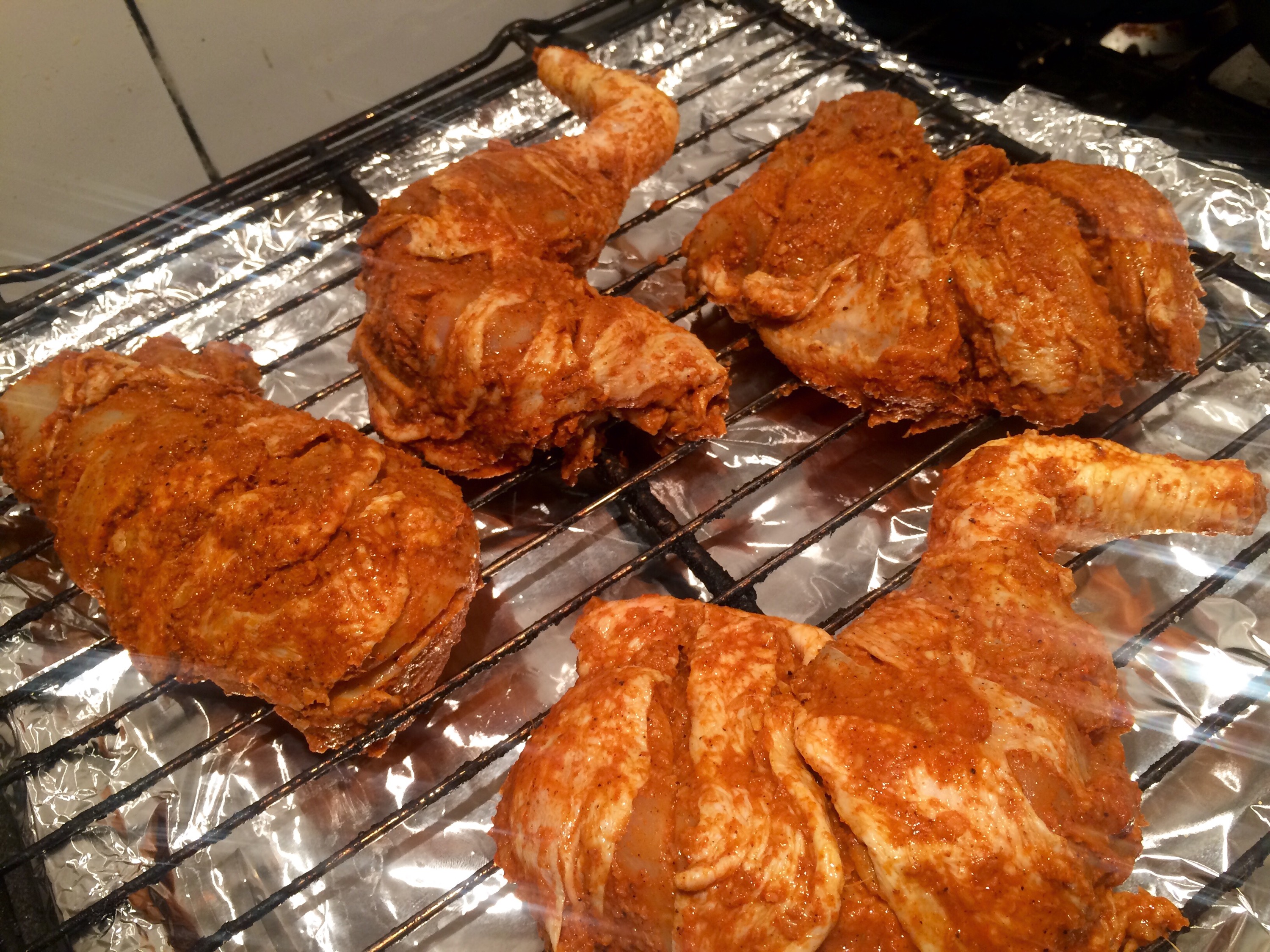 Just removing the big pieces .. Slashing them and adding a really good squirt of white vinegar, garlic and ginger paste , plus tikka spices from the national brand..