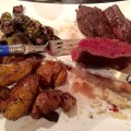 English Wagyu x Longhorn steaks with smashed spuds and home smoked salt