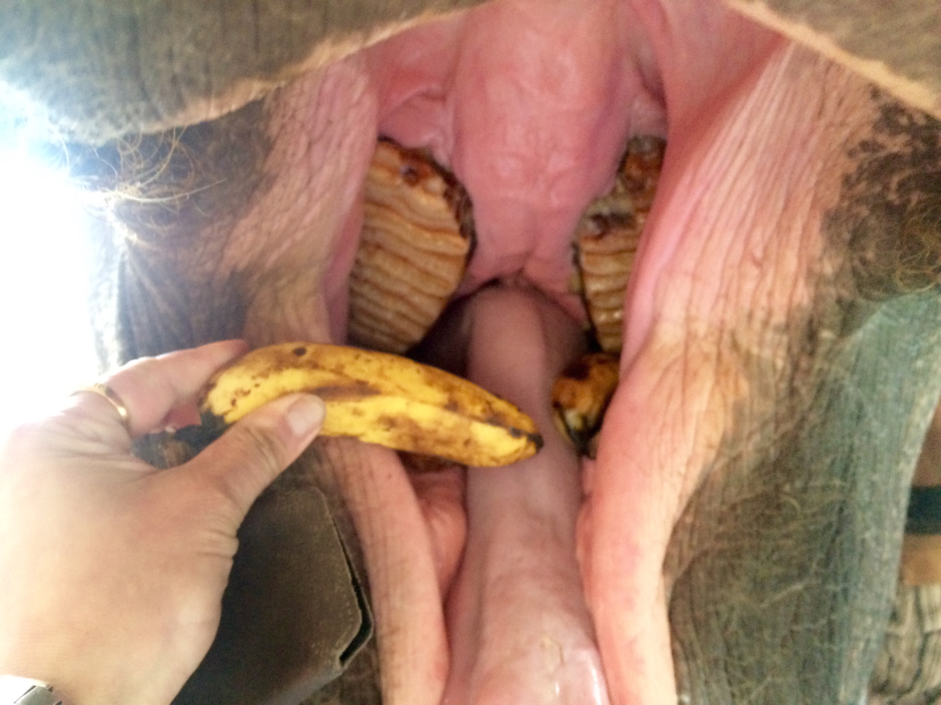 Bananas and sugar cane.. This bis what an elephants mouth looks like close up while you pop a banana into it!