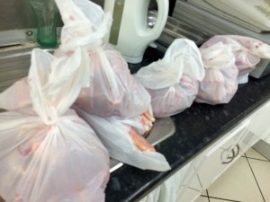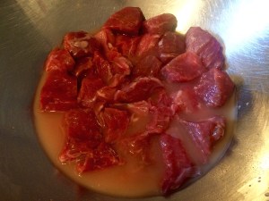 So first mixing up some papaya powder with water.. This tenderises the meat in about half an hour.. It’s brilliant stuff!