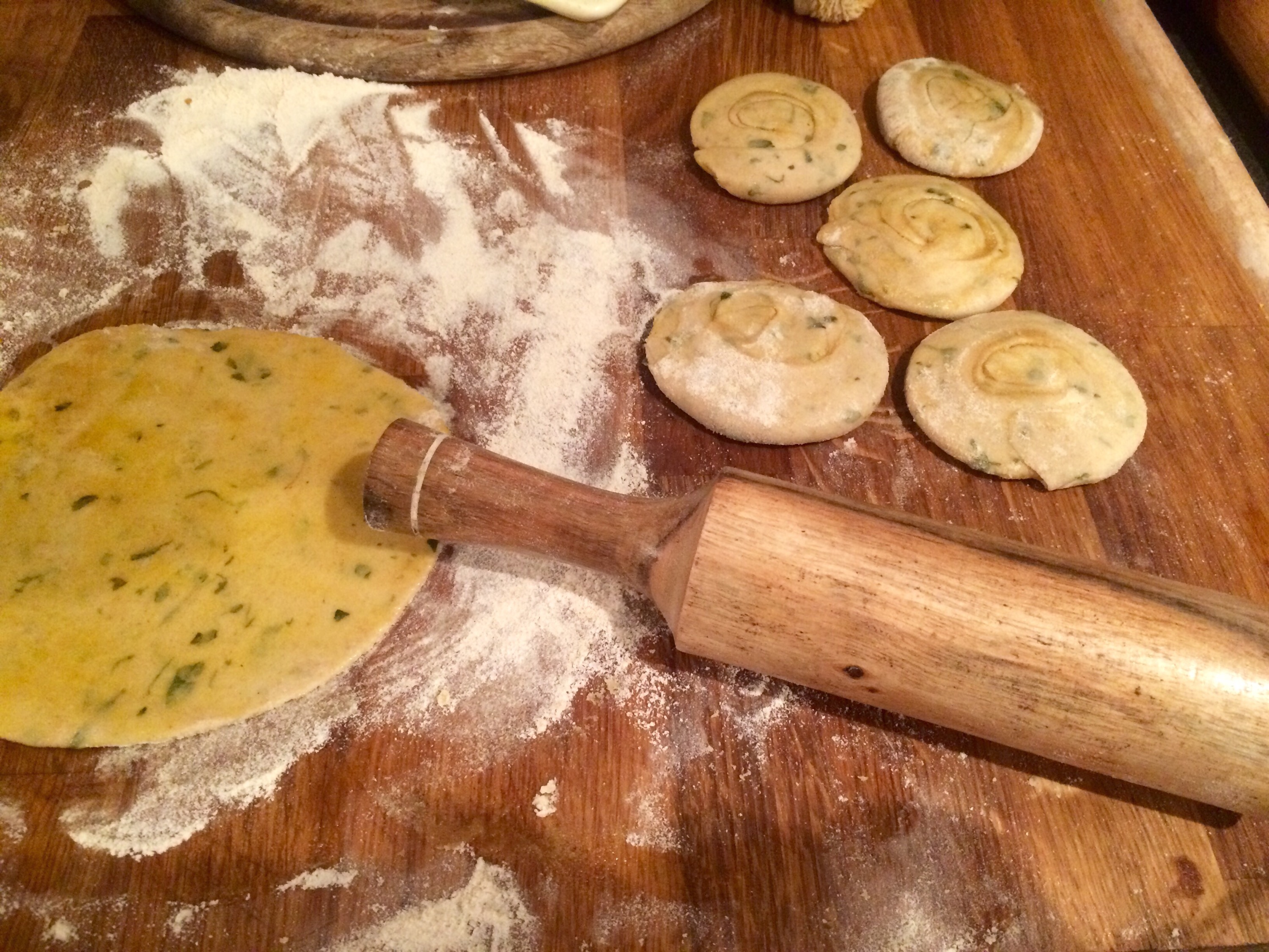 Into a dough. Rested a little while .. In that time decanting coriander sauce, mint sauce, Punjabi pickle, natural yoghurt with lemon and salt.. Frying off some popadoms.. Chopping salad..