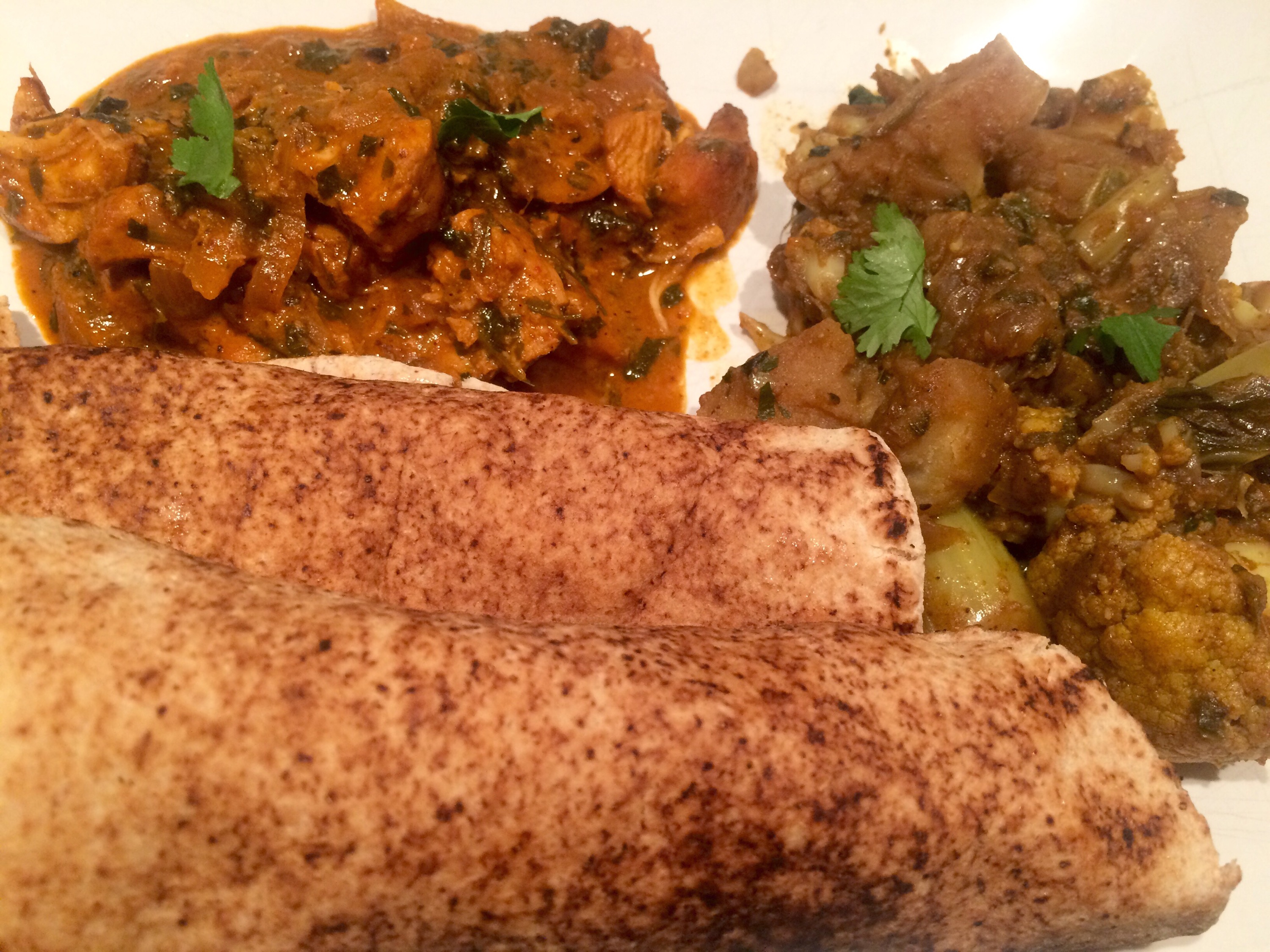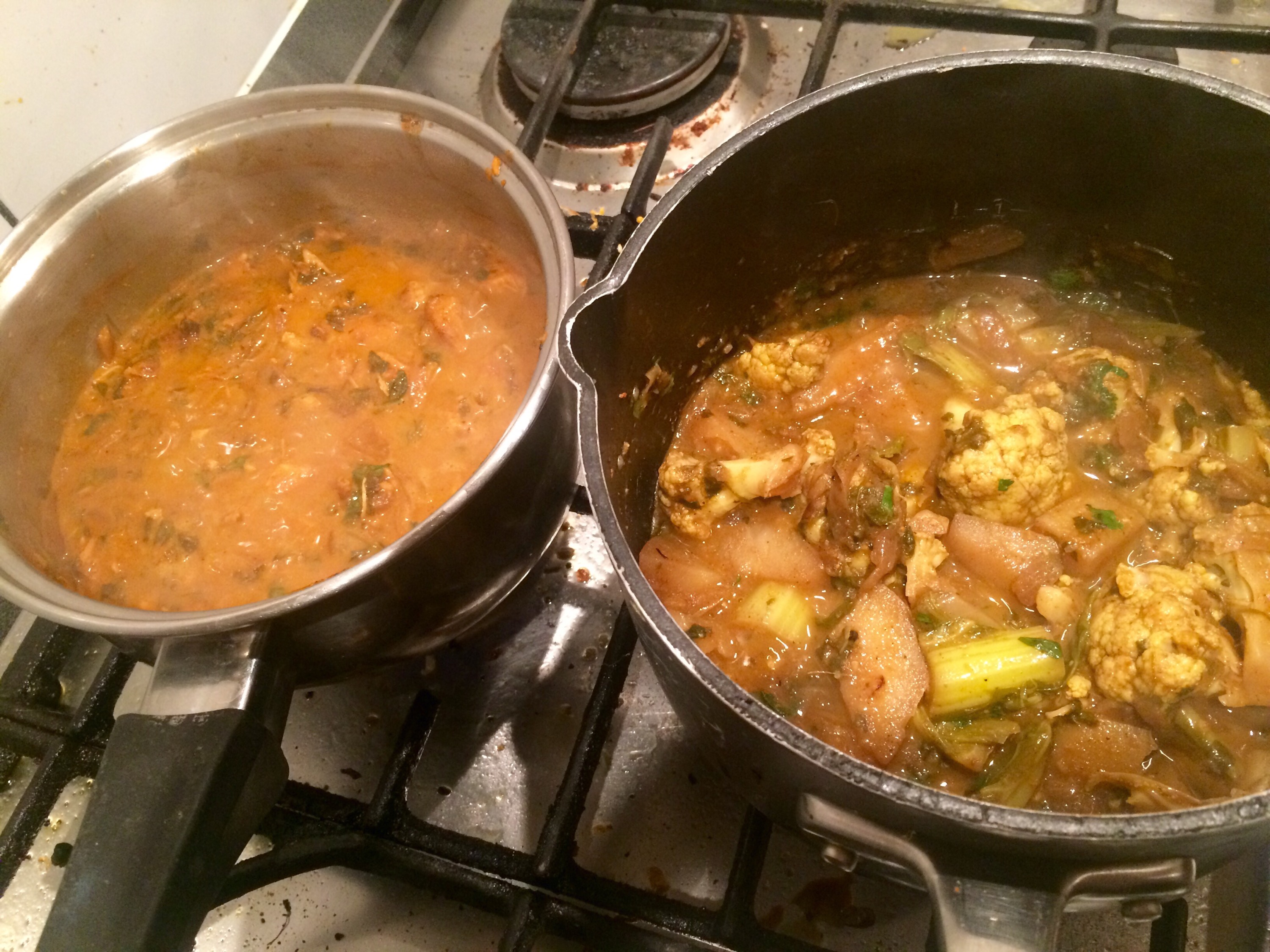 It’s that great chicken tikka from the other night.. A sauce made up from onion , garlic and ginger paste, and a handful of this and that from remements of some Shan family packets.. Plus some smoked paprika.. Maybe a little too much. Some dried peacock fenugreek.. And a great dollop of the desi organic ghee smuggled back from our Indian adventures !