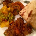 Chicken curry, veal kofta curry, mushroom and pea curry, carrot and brussel sprout curry, lamb kebabs, ghee buttered rice, yoghurt breads…