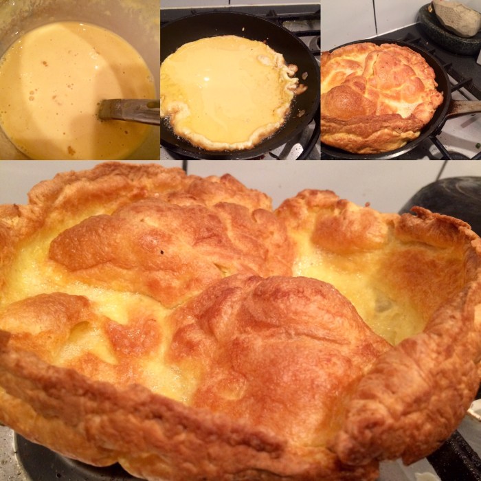 The pan Yorkshire pudding is a doddle .. Batter made up.. Hot small pan with beef dripping .. Batter in.. Then the pan into a screaming hot oven.. Darn cool!