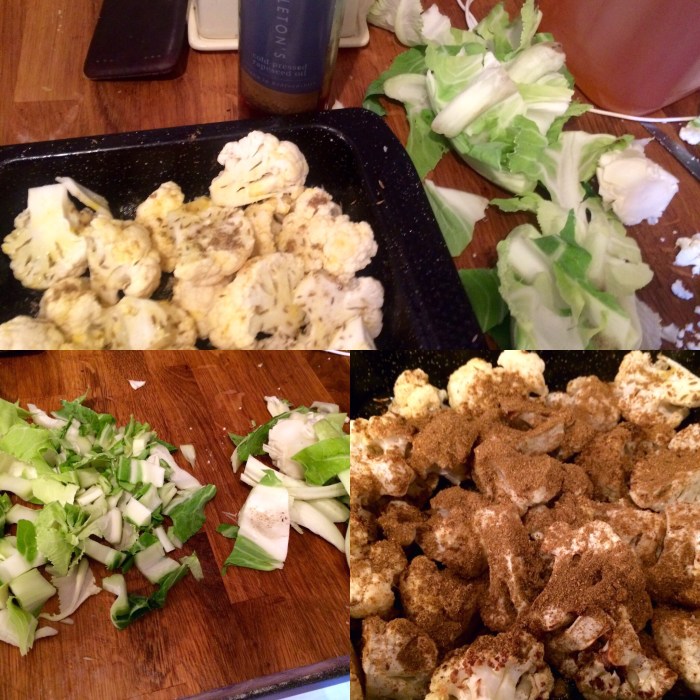 Starting with a cauliflower.. Chopped up and roasted in cumin , Mrs Middletons pimped up chilli oil, garam masala, a pinch of asafoetida