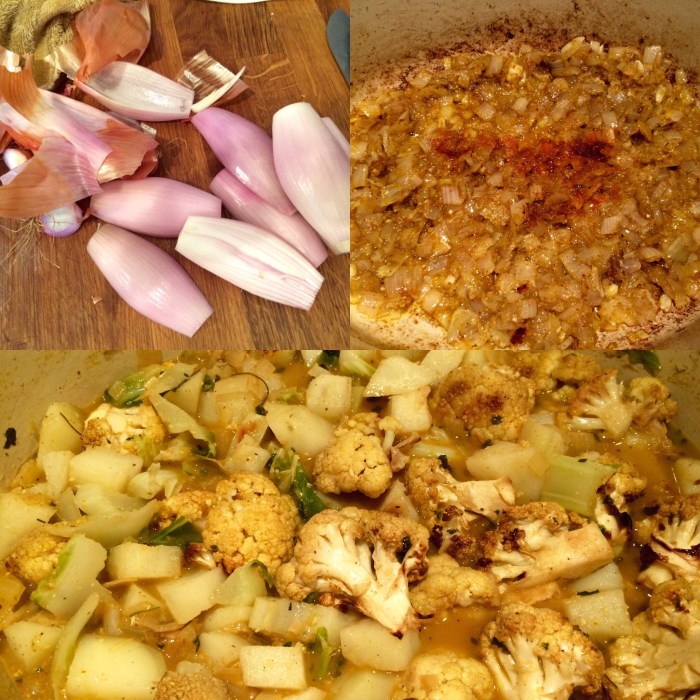 And some kitchin king spice .. A splash of water and the spuds, cauliflower bits and the roasted cauliflower all added..