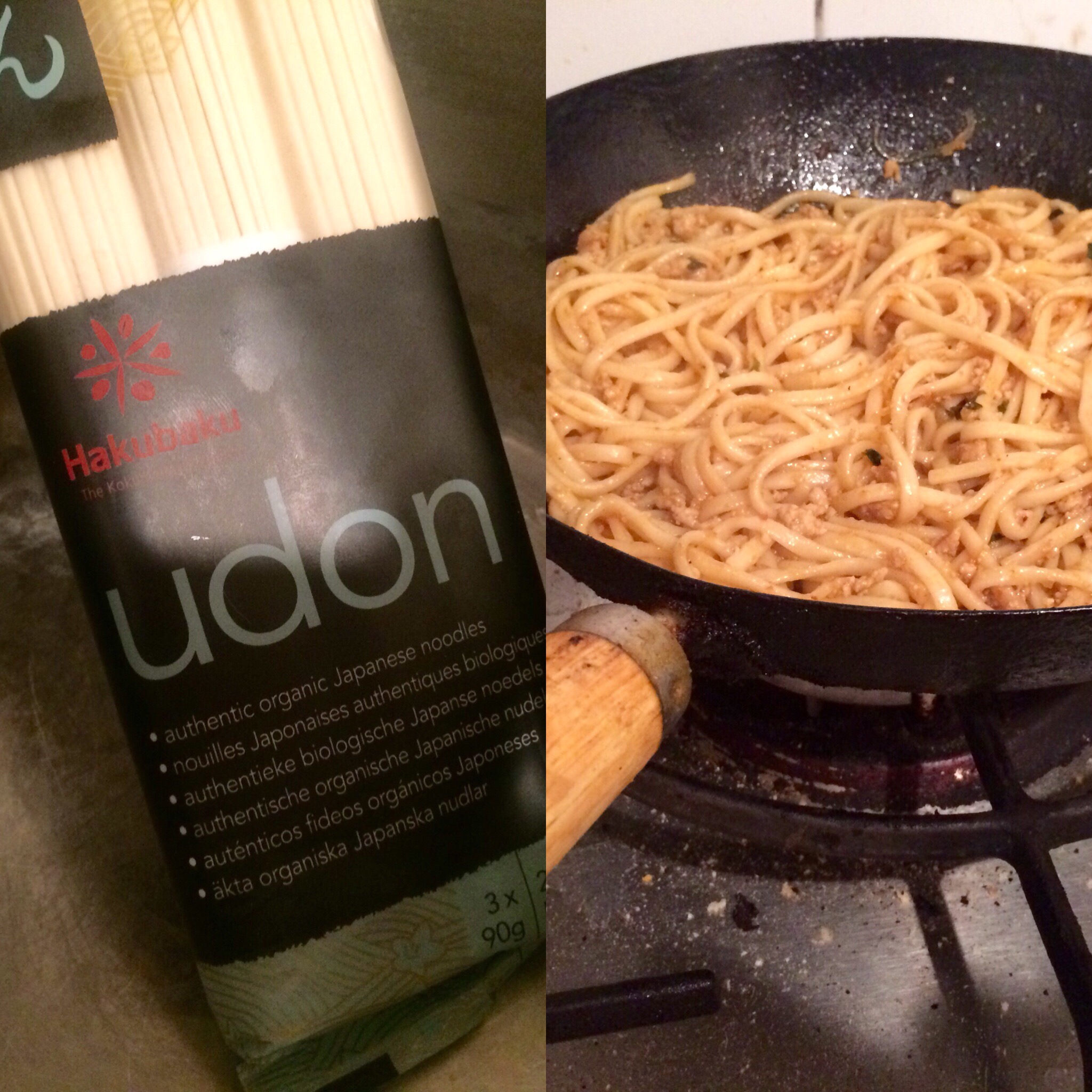 The spicy piggy is to be mixed up with organic udon noodles..