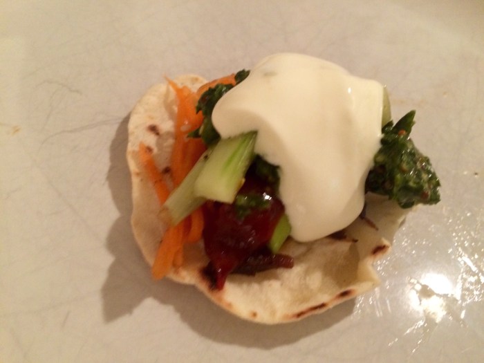 Served up with Korean chilli sauce.. Sour cream and salsa verde ..
