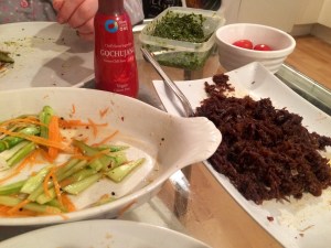 Decided to try make our own Chinese style pancakes to go with the lamb that I shredded and fried off with hoisin and garlic sauce along with an extra amount of ketjip manis.. And strips of cucumber, romaine lettuce and carrot dusted in teriyaki powder stuff and rice vinegar..