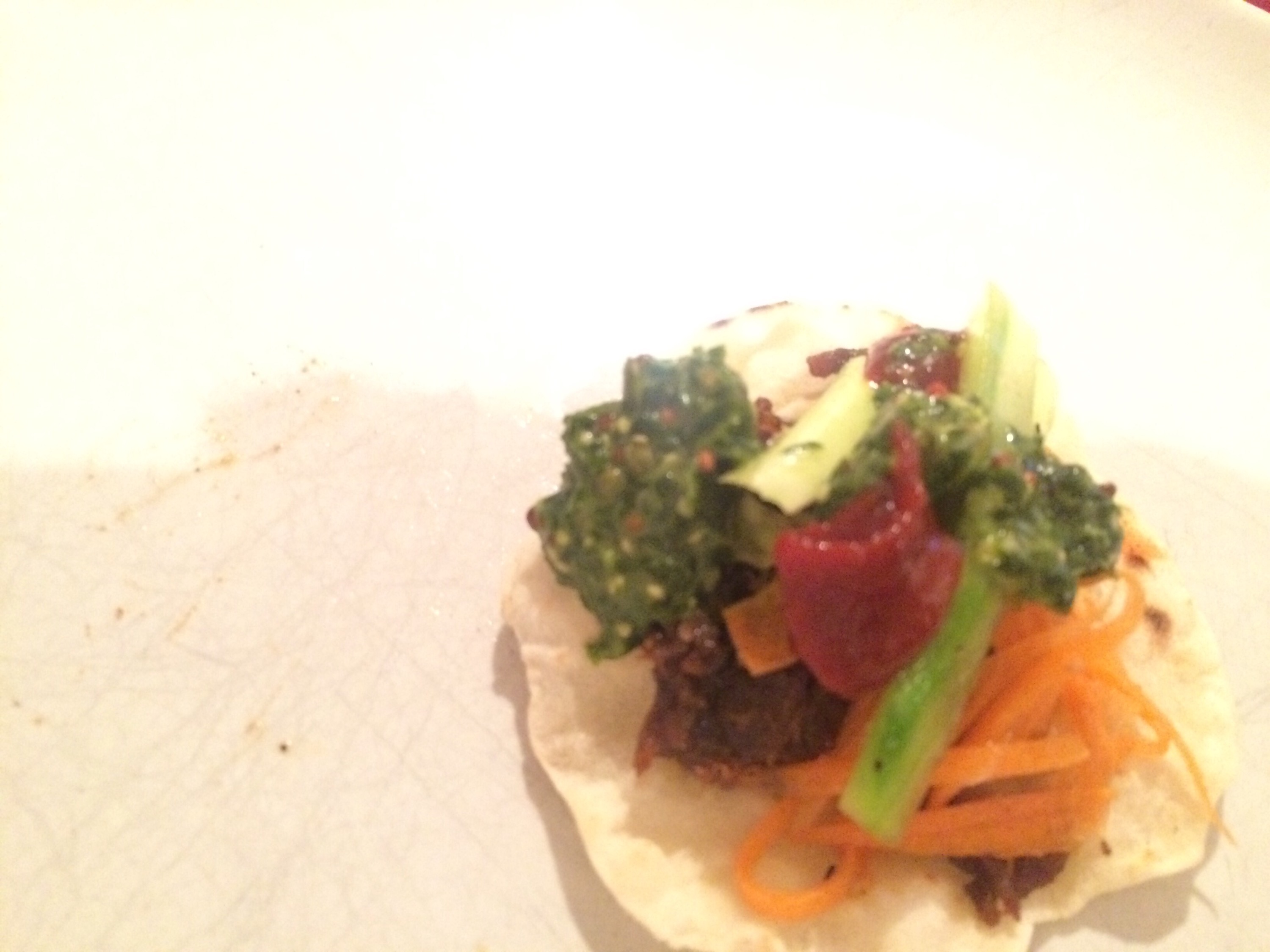 Served up with Korean chilli sauce.. Sour cream and salsa verde ..