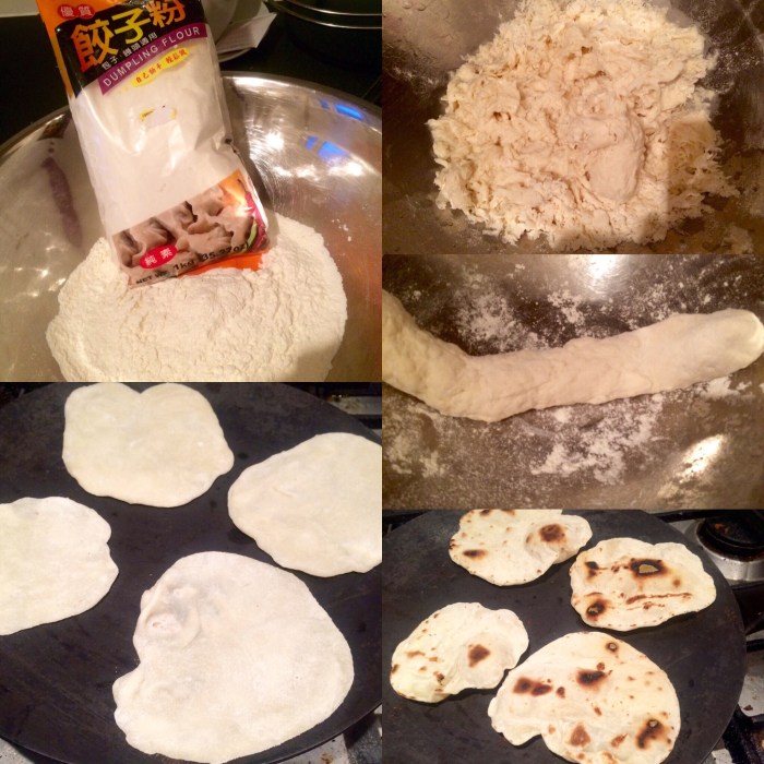 The pancakes made with dumpling flour..