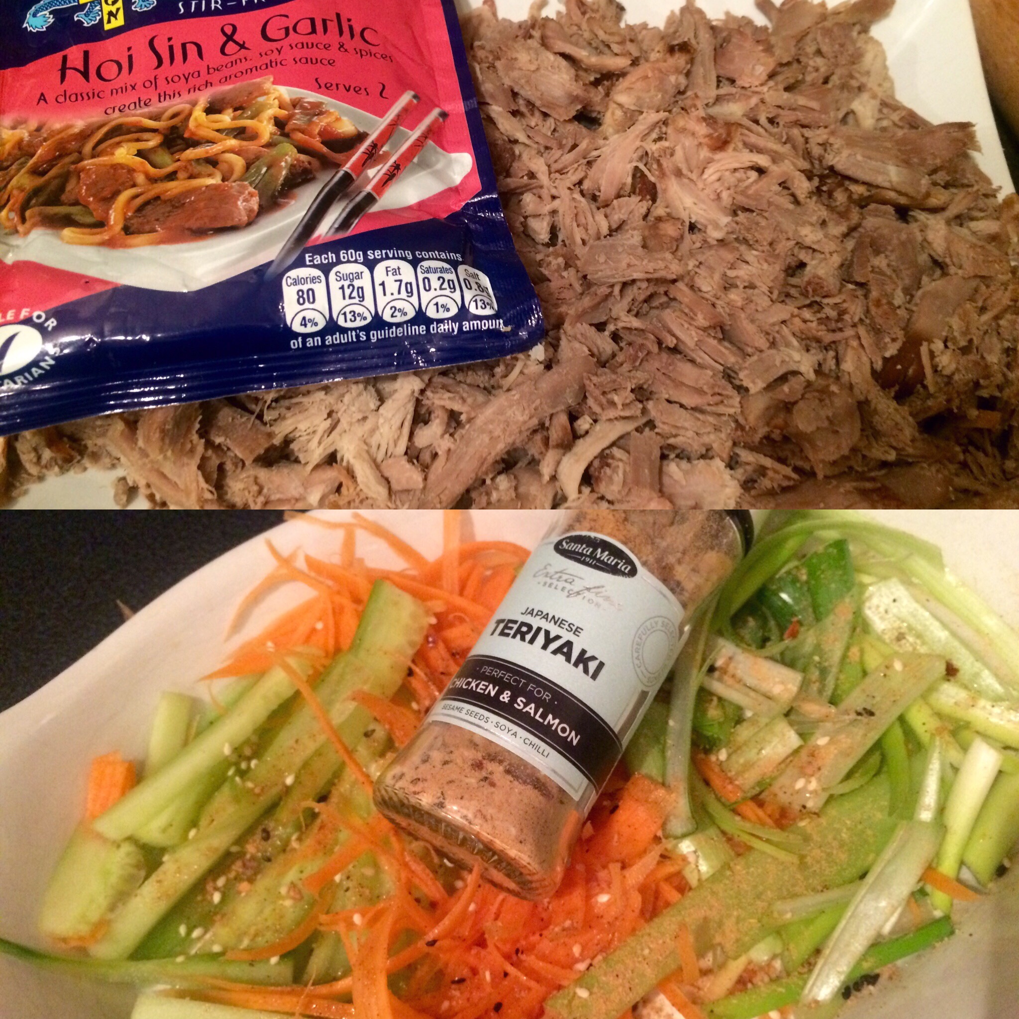 Decided to try make our own Chinese style pancakes to go with the lamb that I shredded and fried off with hoisin and garlic sauce along with an extra amount of ketjip manis.. And strips of cucumber, romaine lettuce and carrot dusted in teriyaki powder stuff and rice vinegar..