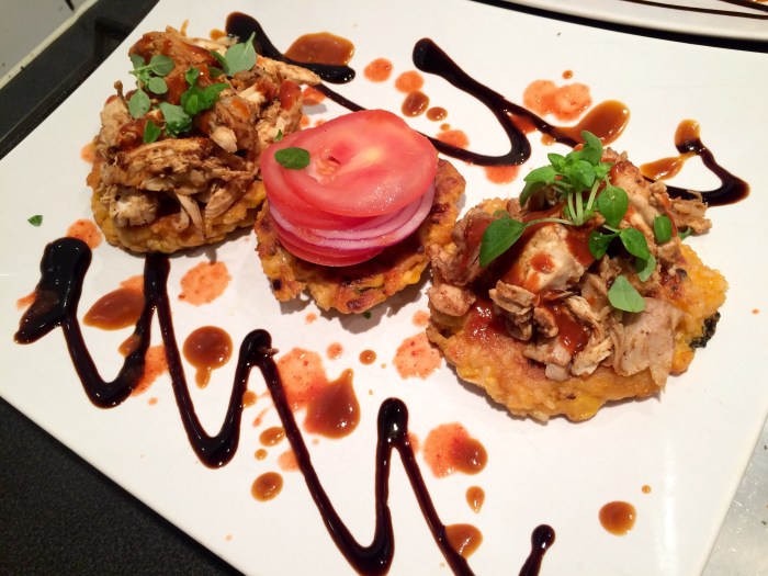 The chicken shredded and put in too of the cakes. and then raiding the condiments cupboard for a medley of bits! Balsamic glaze .. Miso and sesame.. Cholula .. and fresh Greek basil.. I just love that stuff!