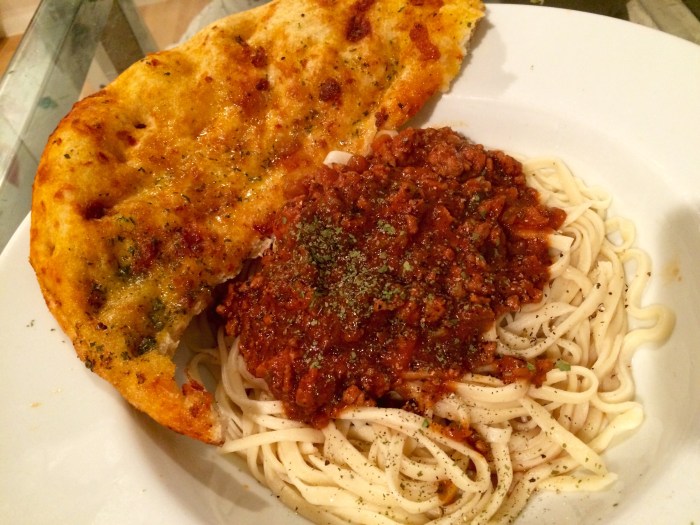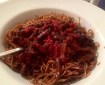 The pasta boiled in salty water for like two minutes only.. A good dollop of the Rose veal red sauce..