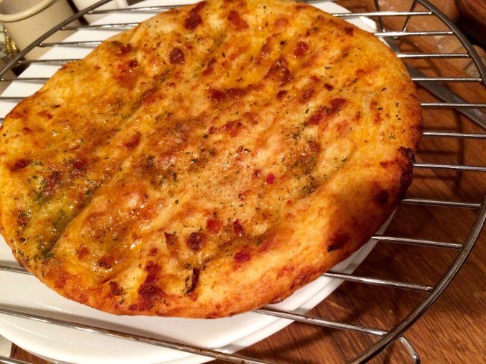 A store bought sundried tomato and garlic bread.. simply baked in the oven.. great smell off it!