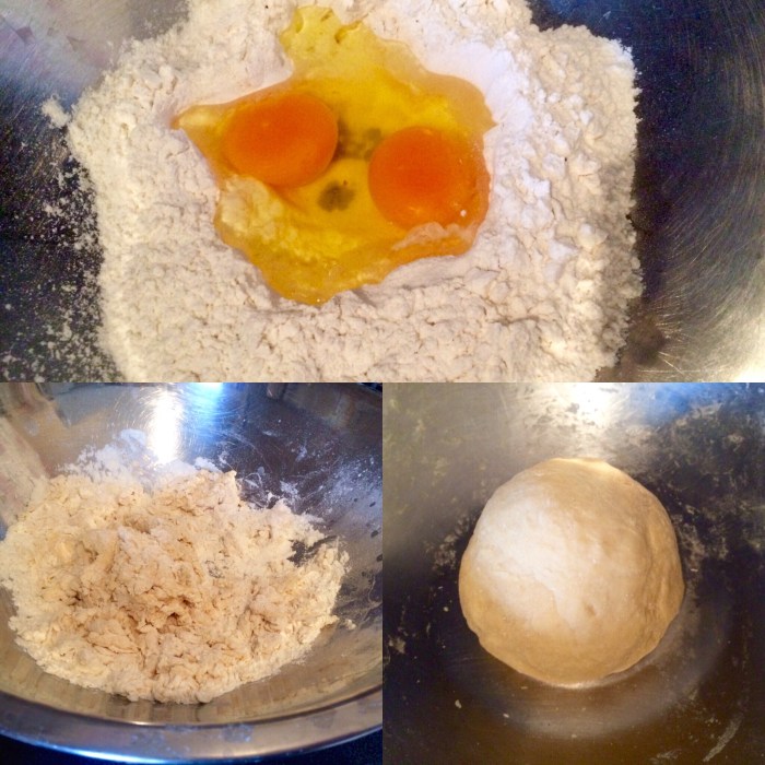Kneaded into a ball.. ( how groovy do those eggs in the flour look!)..