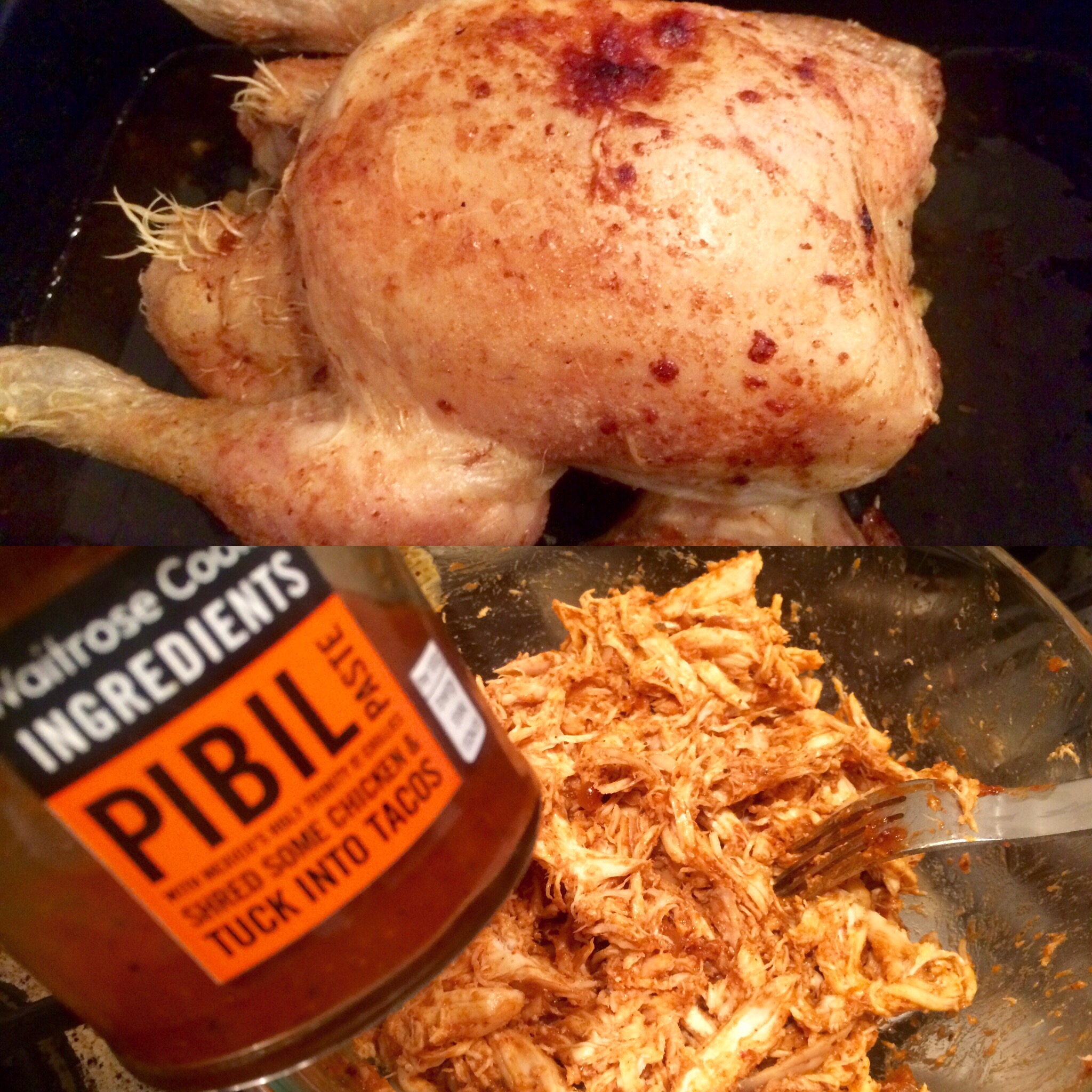 Then taking some meat and shredding it a little mixing the pibil paste .. Good stuff that stuff..