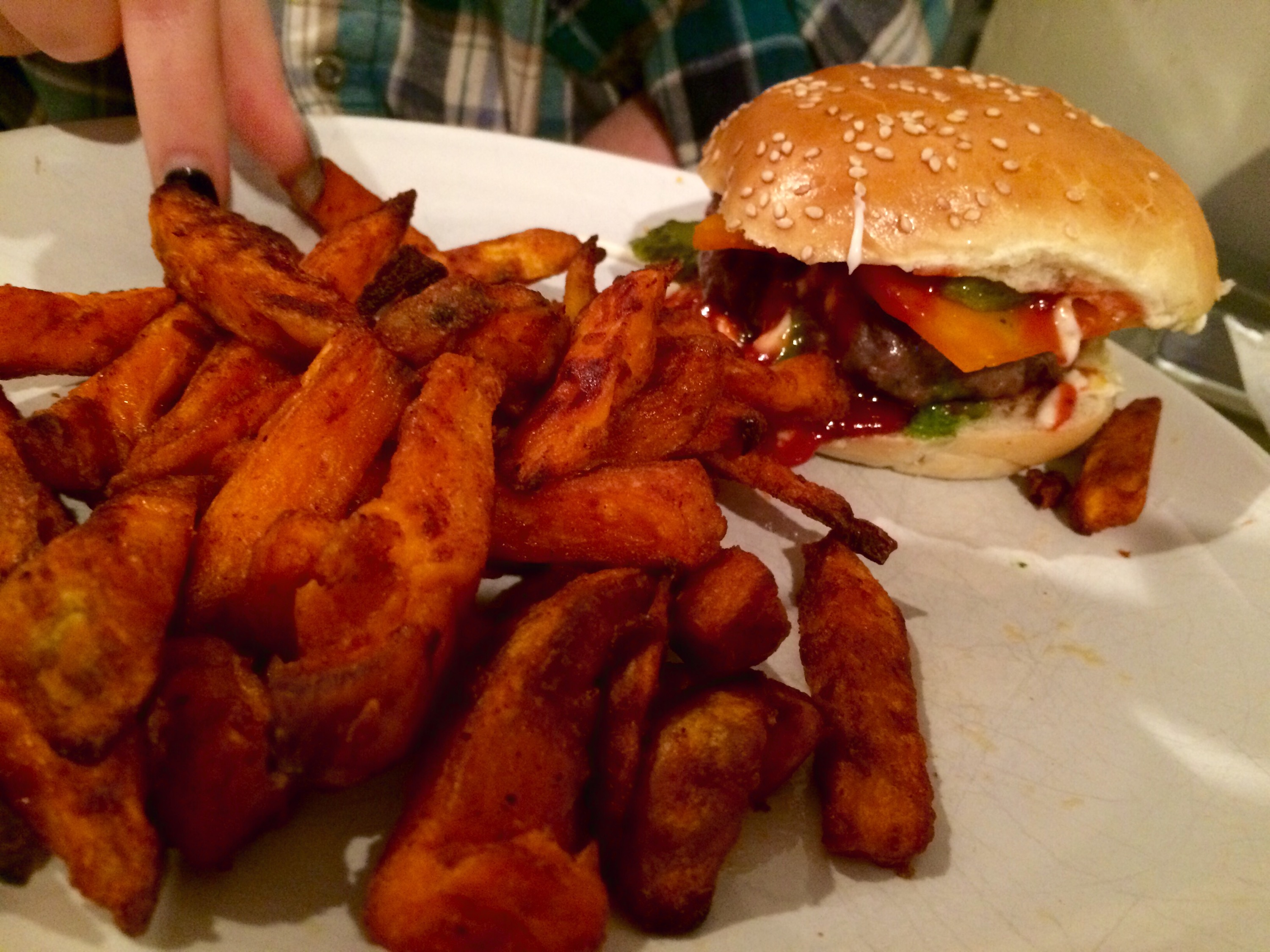 Burgers with sweet potato fries on brioche.. Wanted to try out these burgers from the store. They were pretty good actually! I think I would happily have them again.. Happily ..