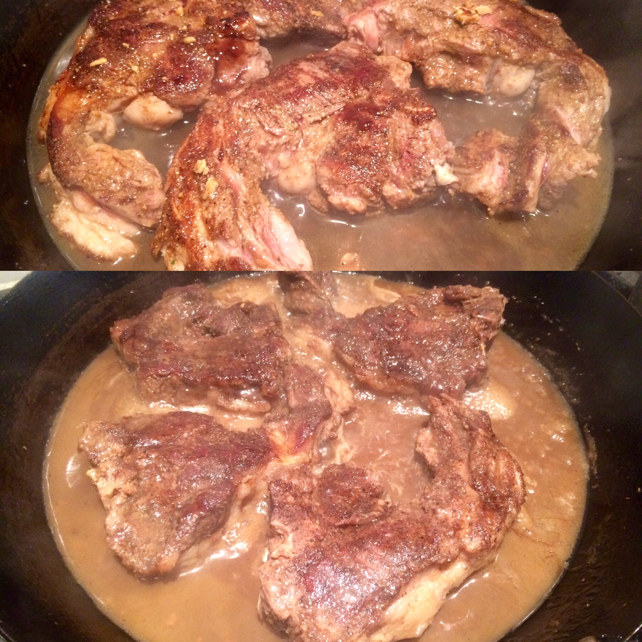 Cooked in the iron pan with a little lamb stock to make sure they stay moist and also to ensure we have a pan gravy..