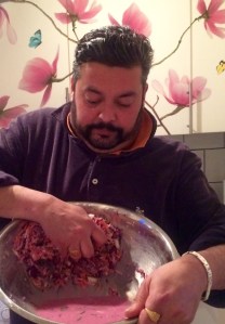The chimchurri made thr other day with whole bunches of flat leaf parsley, coriander, some mint and oregano, white wine and cyder vinegar.. Salt and lots of garlics! Finally olive oil to whizzy whazzoo all together.. That always benefits a few days of getting its groove on in the fridge..