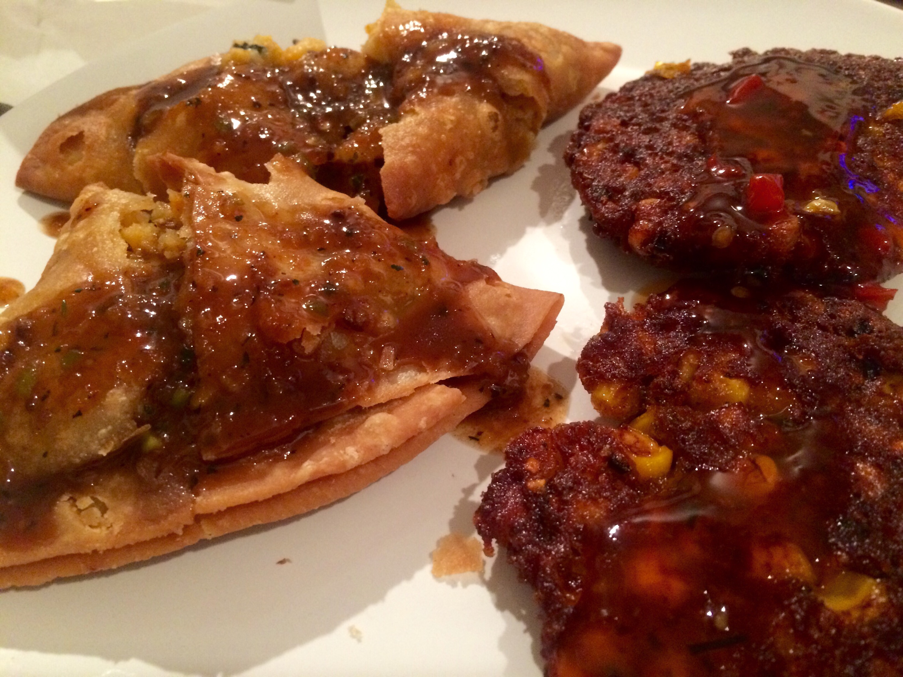 Two delicious samosas from @simplysamosas a great sauce that has heat, sour, sweet and savoury notes.. Seriously good yet cannot unravel the ingredients!