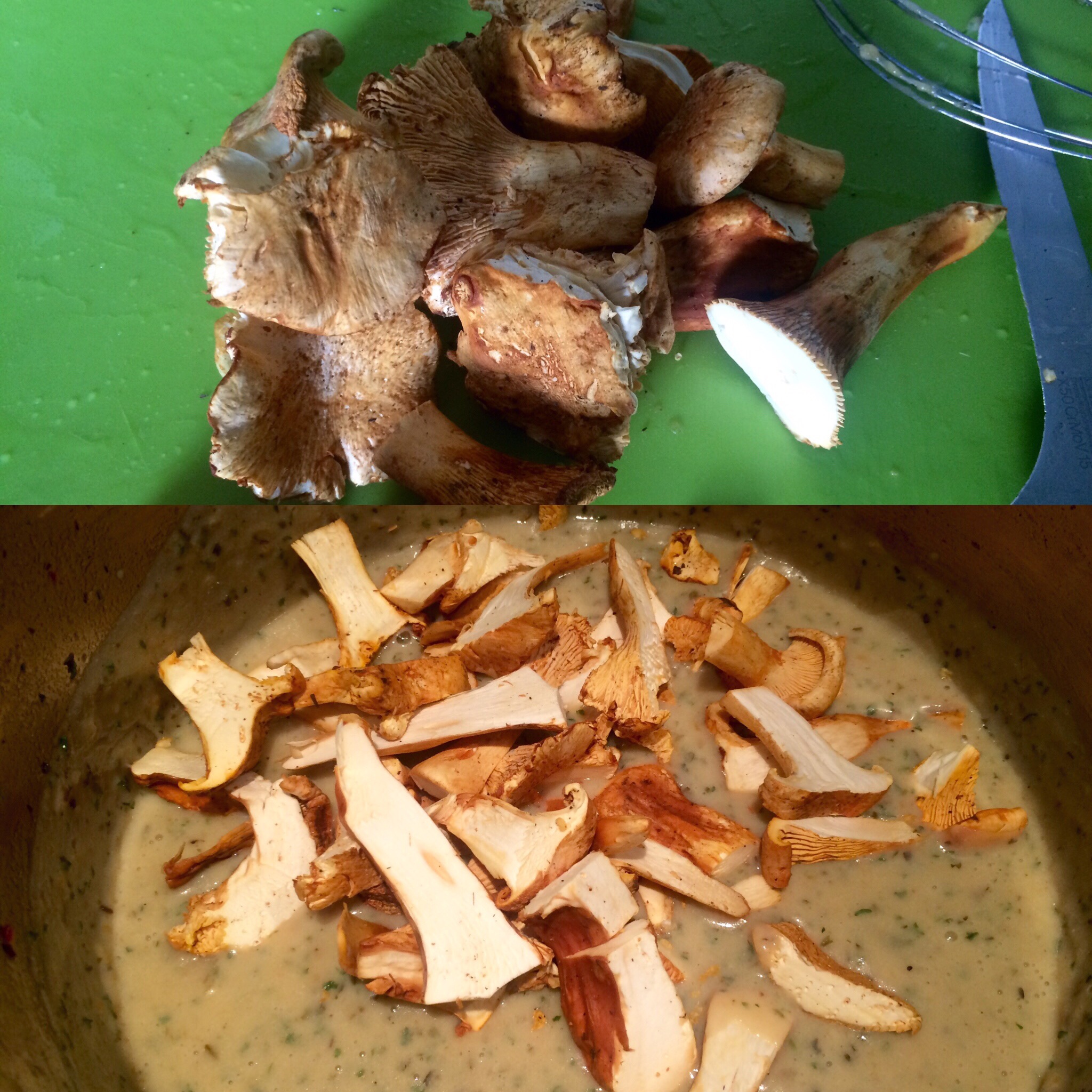 Then the sauce made with heavy milk , dried parsley and the chopped chanterelles..