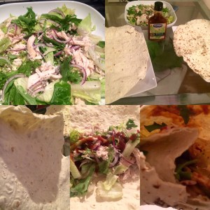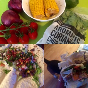 So this was a couple of wrap outings.. First was a feather streak sliced thin and fried fast.. A salsa of corn from a prior meal with red onion, baby Italian tomatoes, coriander and lime.. Delicious!