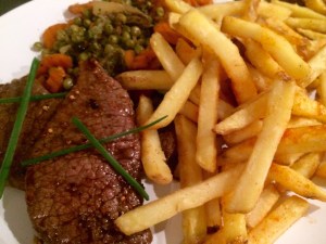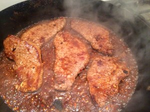 A super hot pan and red ticket top rump sliced, dusted in steak house spices and then a splash of Worcestershire sauce.. ( and of course a slap! of French salted butter..)