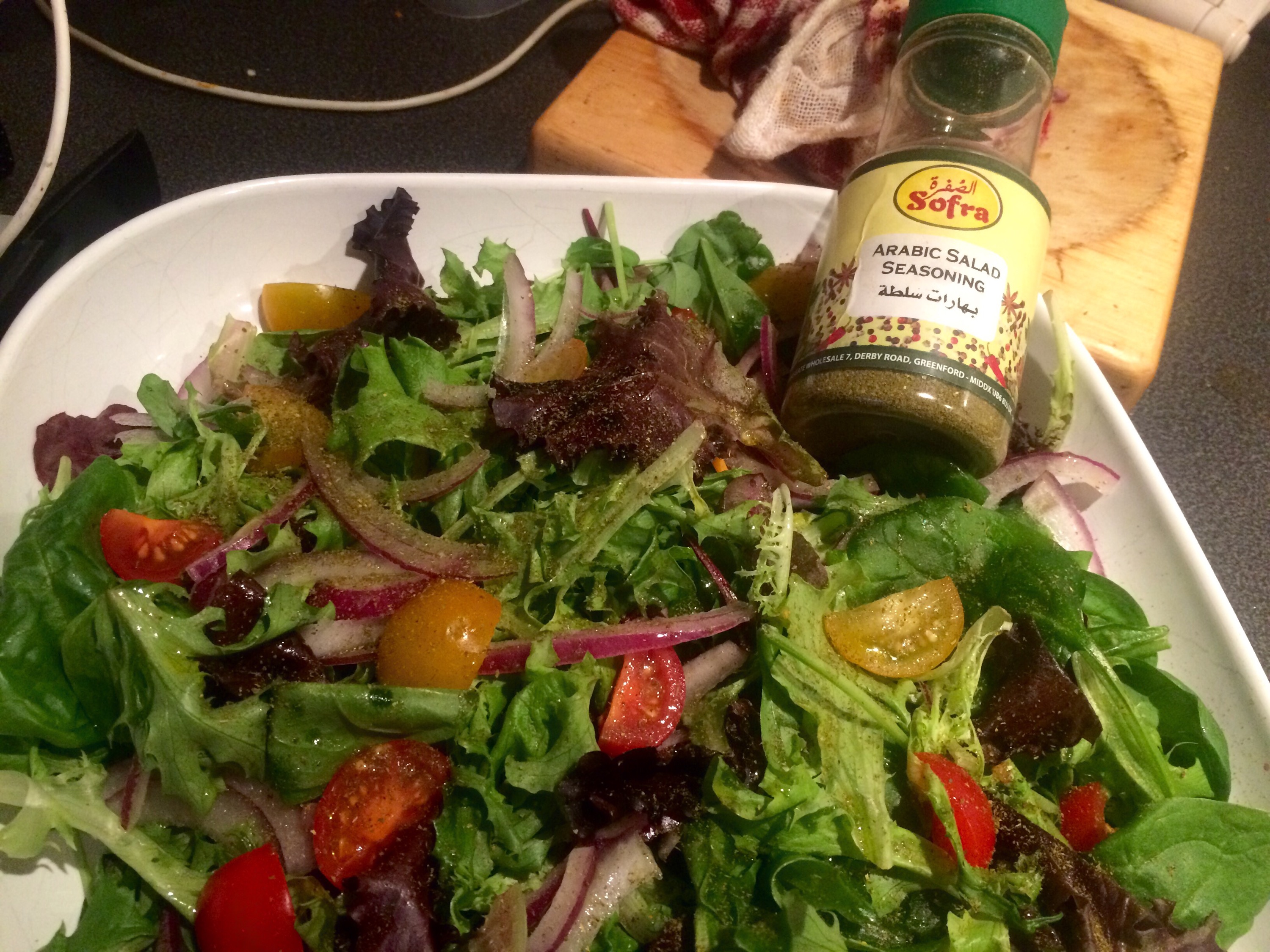 A salad made with ‘stuff’ .. And seasoned with Arabic salad seasoning.. Good storecupboard item that stuff!