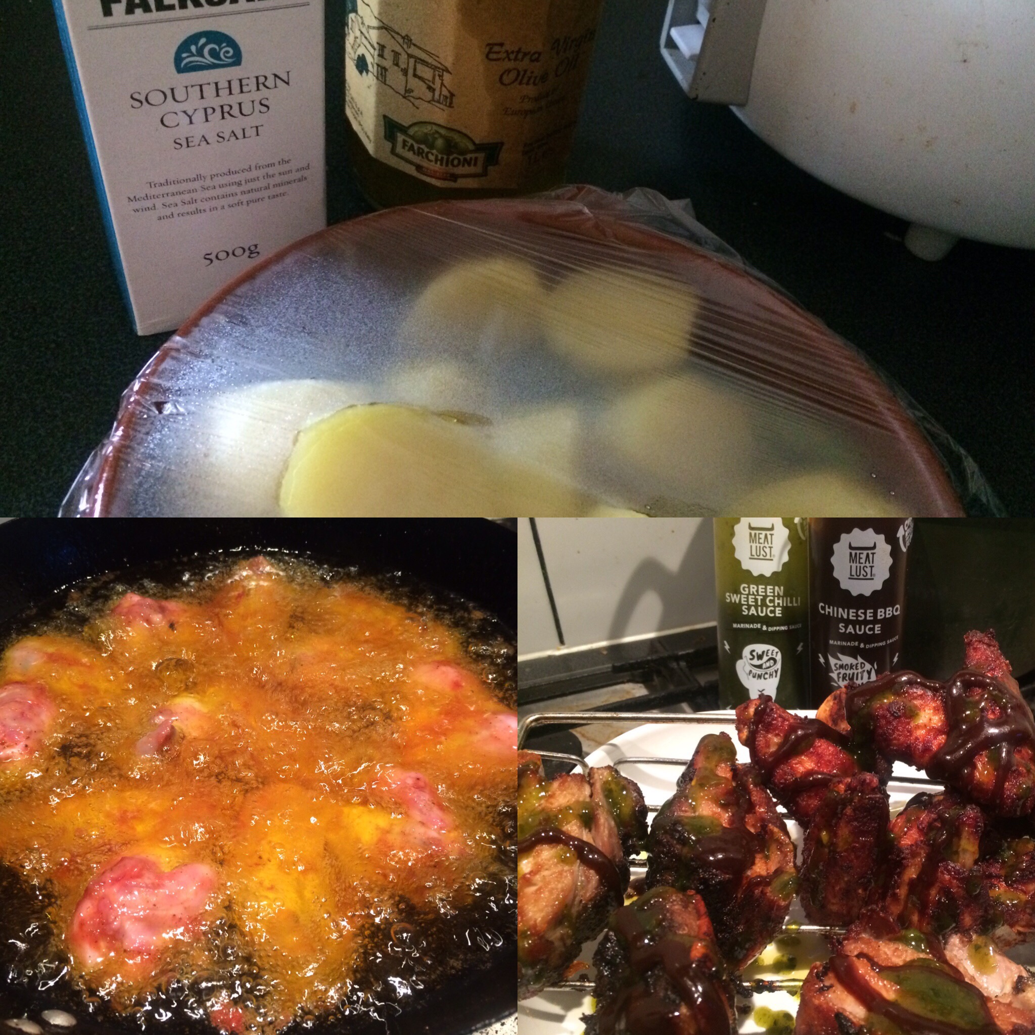 Having scored some excellent chicken wings the needed dusting in Peking style seasoning .. Then a little cornflour and fried off in uncle bens wok with Mrs middletons oil…