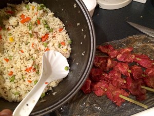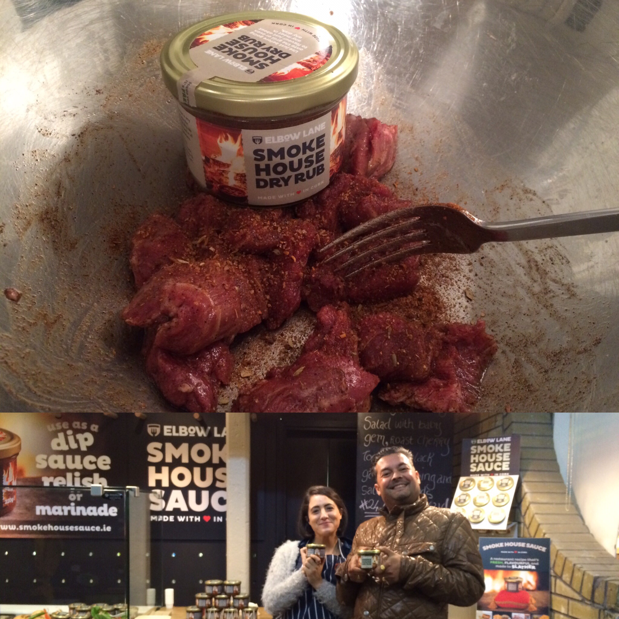 The red ticket lamb loin cut up and the rub rubbed.. Then cooked in the iron pan.