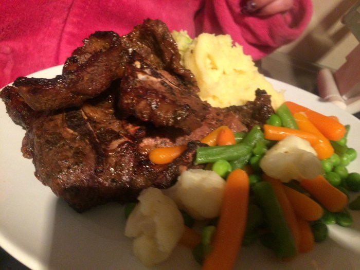 And what better than minty lamb chops.. random cuts of bits of leg and loin.. dusted with foodservice minty lamb powder .. think like the Ines you see in butchers shops.. yet this is indeed a wee bit more glamourous… gluten free too!