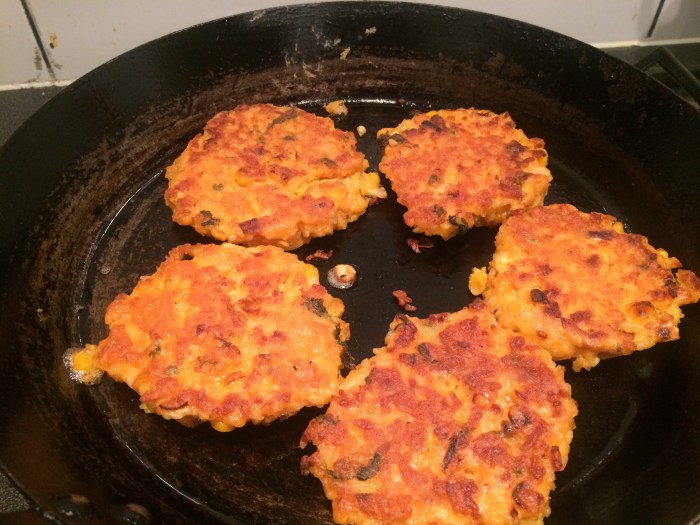 Took the leftover fries and the rice and smushed it all getter with a couple of eggs..adding some cornflour to help..